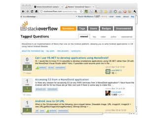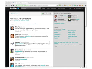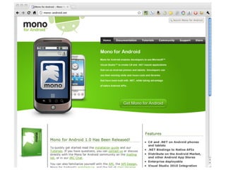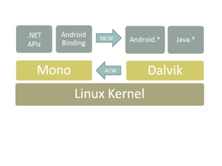 The document discusses Mono for Android, an open-source implementation of Microsoft's .NET framework. It addresses various aspects such as its components, benefits like cross-platform support, and common myths about its performance and usability. The presentation also emphasizes the similar nature of Java and C#, making it accessible for developers familiar with either language.