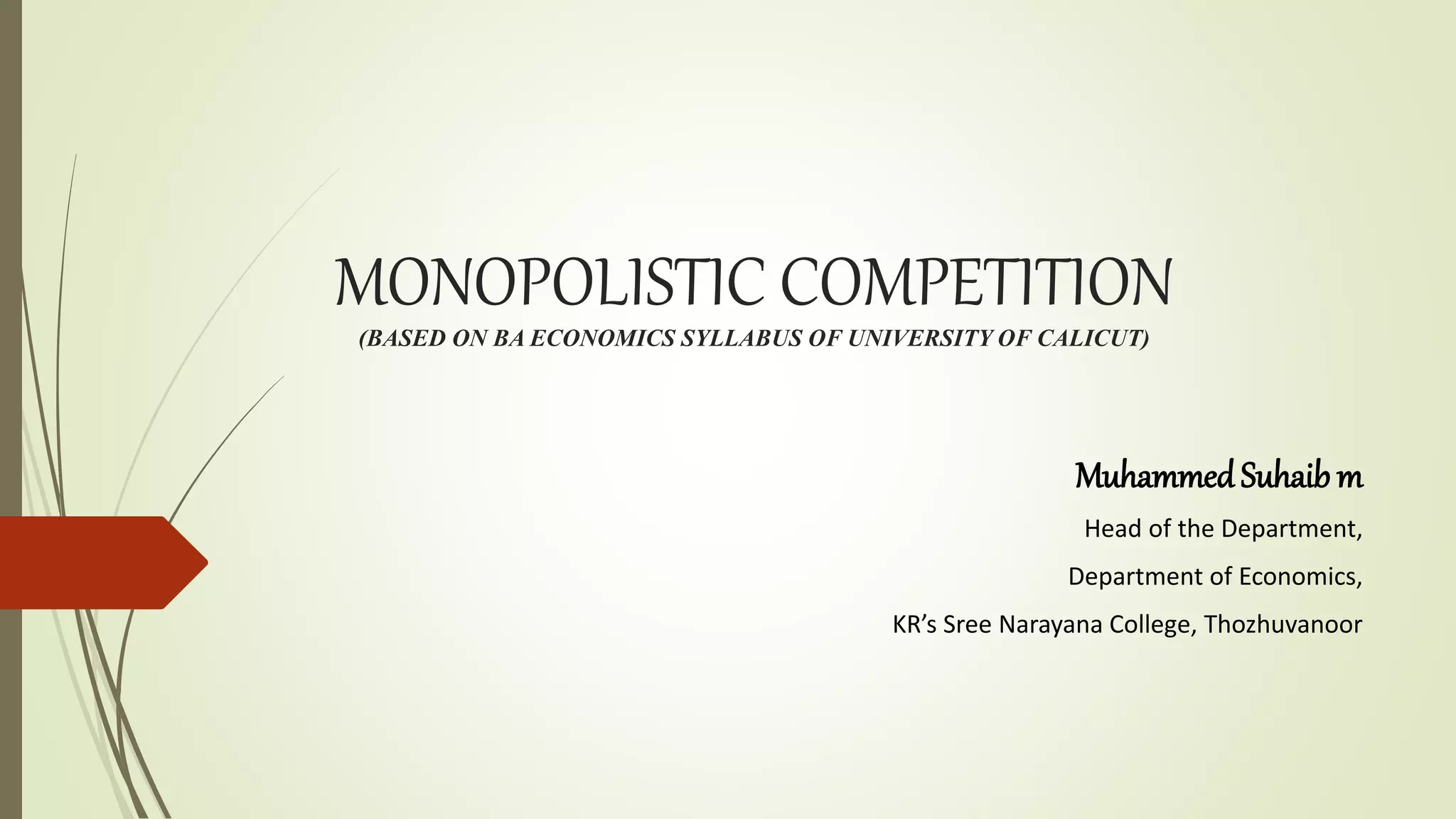 Monopolistic competition is a market structure with many small businesses that produce differentiated products. Each business has some control over price due to product differentiation but faces competition from substitutable products. Key features include differentiated but substitutable products, many sellers and buyers, free entry and exit, and profit maximization through product differentiation and non-price competition like advertising. In long run equilibrium, firms earn only normal profits as entry by new firms eliminates excess profits. Output is lower and prices higher under monopolistic competition compared to perfect competition.