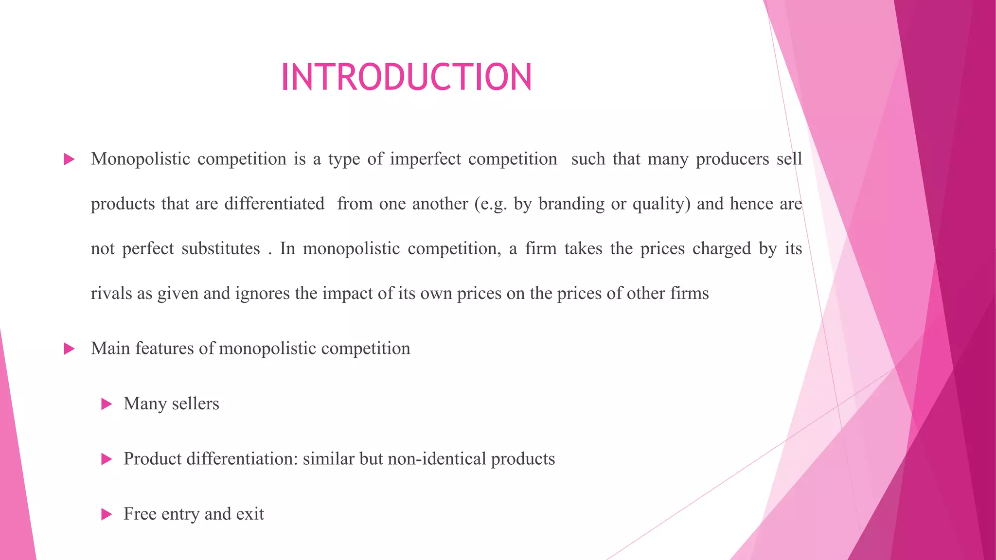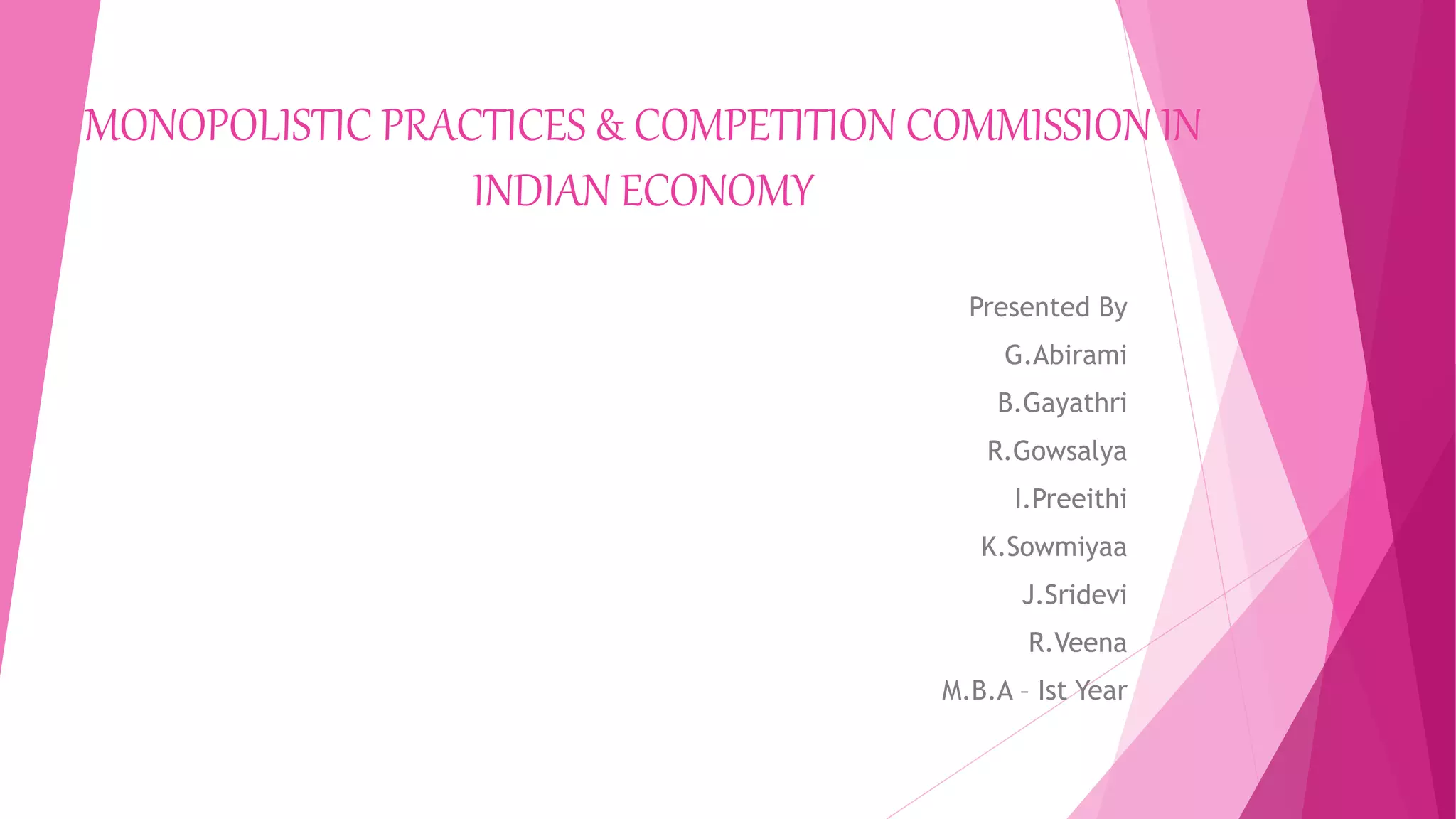 Monopolistic practices and the role of competition commissions in the Indian economy. There are many sellers of differentiated products, free entry and exit in the market, and each firm faces a downward sloping demand curve (Monopolistic Competition). The Competition Commission of India prohibits anti-competitive agreements and abuse of dominant positions to promote efficiency, productivity, choice and reduce costs. Advertising is used by firms in monopolistic competition to attract customers to differentiated products and establish brand names as a signal of quality.