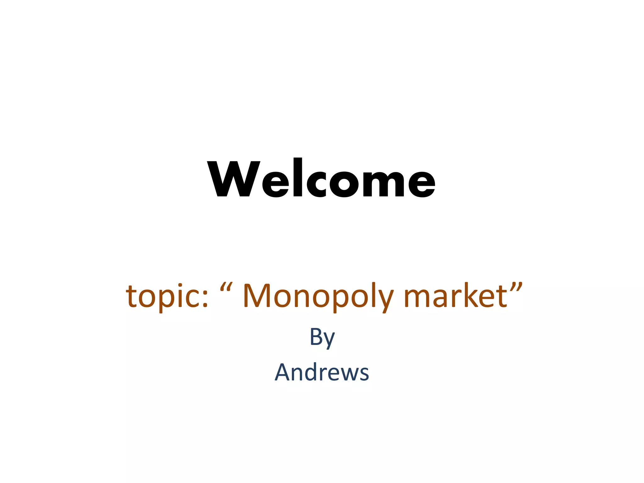 A monopoly market is characterized by a single seller and no close substitutes for the product. Definitions provided state that a pure monopoly exists when there is only one producer for a product with no direct competitors. Reasons for monopoly include ownership of key resources, government franchises, and intellectual property protections like patents.