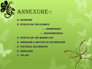 The monsoon is considered a unifying bond for India. It affects the climate, agriculture, and way of life across the subcontinent. The monsoon winds bring rainfall from May to September each year, influencing temperatures, vegetation growth, and seasonal festivals celebrated from north to south. The monsoon is crucial for agriculture and the economy. While it can also cause flooding and property damage, the rhythmic cycle of seasons united by the monsoon winds is a defining feature of India.