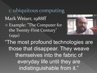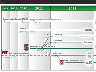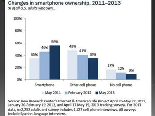 This document discusses trends in technology and higher education from 2013 to 2020. It predicts that mobile phones will become the primary internet access point for most people due to increasing computing power and low prices. Tablet computers and MOOCs are expected to be adopted within one year. Jobs predicted that while personal computers will still be used, most people will not need them. Touchscreens, motion controls, and mobile apps are seen as interface transformations. The document discusses many ongoing and potential impacts of technology on higher education such as open educational resources, automation impacts, and challenges of economic and demographic changes.