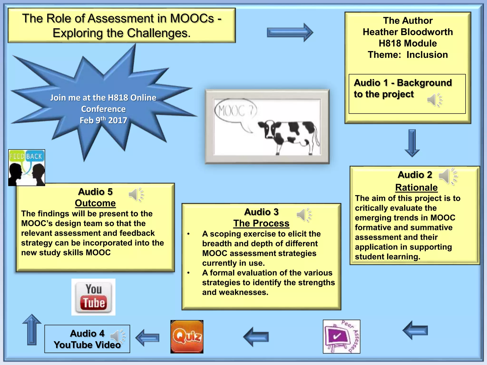 The document summarizes Heather Bloodworth's project exploring assessment strategies for a new MOOC on study skills being developed at her university. The project will involve scoping current MOOC assessment methods, evaluating their strengths and weaknesses, and presenting findings to the course design team. The goal is to incorporate an effective assessment and feedback strategy to support learning for students taking the MOOC, including those looking to improve their study skills for postgraduate health programs.