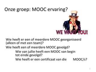 • MOOC onderzoek vanaf 2011 (vb. mobile MOOC, Self-Directed Learning in