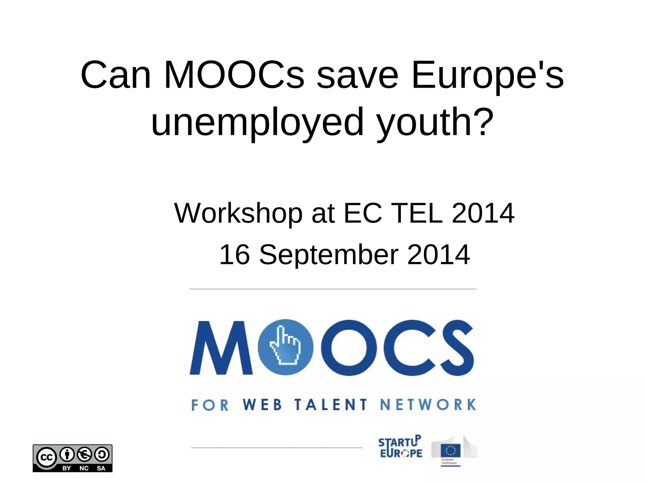 This document summarizes a workshop that aimed to explore how MOOCs can help unemployed youth in Europe. A study was conducted that included a literature review of MOOCs, a survey of over 2,800 individuals, and expert reviews. The survey found high demand for MOOCs in web design and a need for hands-on, practical courses that develop job skills. Recommendations included improving the mapping of supply and demand of MOOCs, establishing quality standards, and ensuring courses acknowledge learner demands for practical, skills-based content with opportunities for feedback and networking.