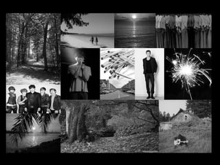 The document discusses plans for a music video including setting an autumn forest scene at sunset and dusk to represent the indie rock genre. Wardrobe for the band will feature blacks, whites and greys to match the genre. Props will include fire elements like sparklers, fireworks and matches to add drama and represent the song being used called "Matches."