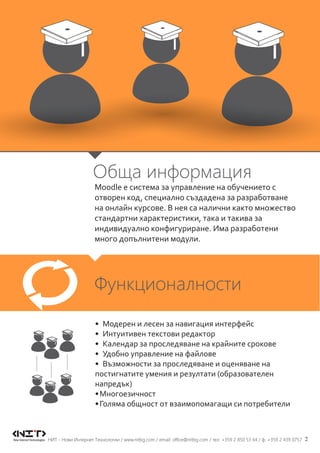 • Moodle е система, с която създаването и споделянето на информация е лесно и удобно.