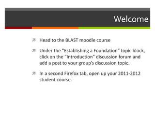 2) Add a discussion forum to the 2011-2012 student course for students to post in.
