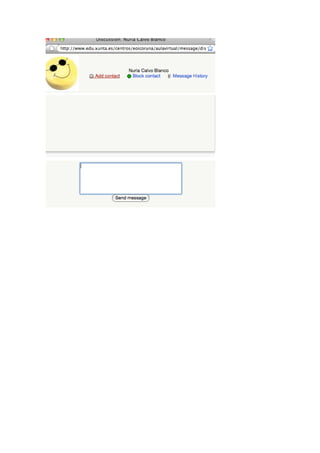 Moodle is an online learning platform that allows users to access courses through a web browser. To log in, users enter the URL and their username and password. If not registered, users can create a new account. Once logged in, users can update their profile by clicking their name, adding a photo and contact information. Moodle allows for communication through messages, forums, wikis and chat rooms. Messages and forums enable communication between users, while wikis are collaborative documents and chat rooms provide live discussion.