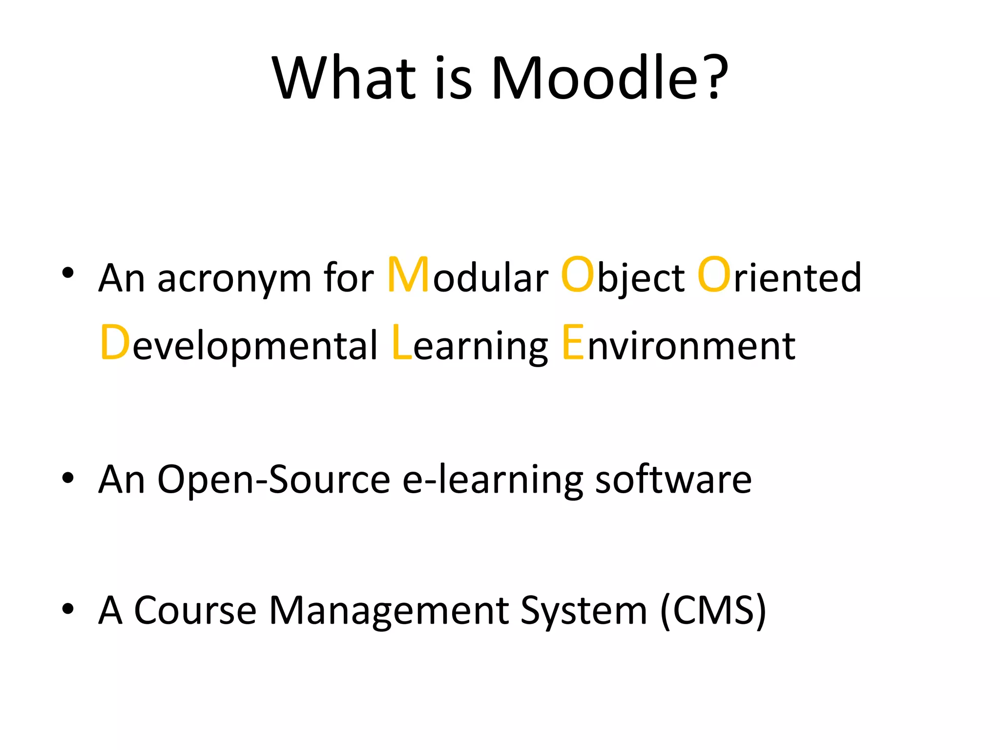 Moodle is an open-source e-learning software and course management system (CMS) that supports various operating systems and allows for a hybrid approach to learning. It features a simple user interface, and incorporates a social constructivism educational philosophy, providing tools for sharing materials, engaging discussions, quizzes, and managing assignments. Moodle's architecture includes components for static and dynamic content, various course formats, and management tools to ensure a smooth online learning experience.