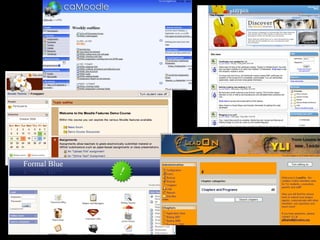Moodle is an open-source learning management system (LMS) that is used by educators around the world. It has over 150,000 registered users on its main site and is used by universities like UCLA, UC San Diego, and Smith College. Moodle was designed to help foster online learning communities following social constructivist pedagogy. It has a variety of features that allow for online collaboration, including forums, wikis, quizzes, assignments and more. Moodle provides these features freely as open source software and has an active development and support community.