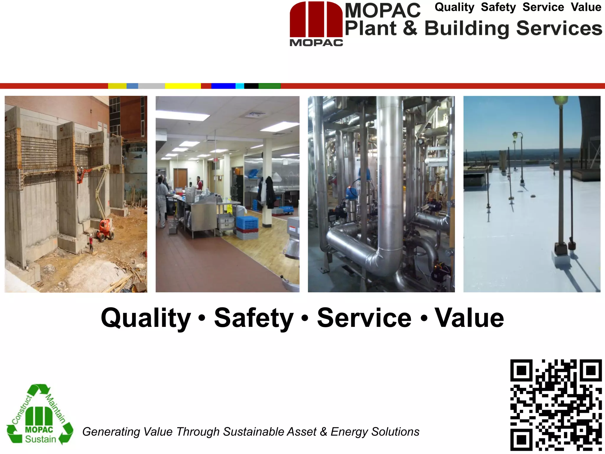 MOPAC is a regional contractor that provides quality construction, facility maintenance, and energy services. It was founded in 1978 and is headquartered in Atlanta, Georgia. MOPAC focuses on safety, quality workmanship, and customer service across various industries. It uses an asset management system called M.A.P.S. to help customers lower costs and standardize maintenance processes.