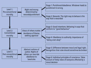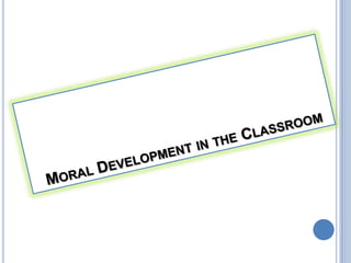The document discusses Piaget's, Kohlberg's, and Loevinger's theories of moral and social development, outlining their stages of development from childhood through adulthood and how these theories can be applied in classroom settings to promote higher levels of moral reasoning. It also reviews criticisms of Kohlberg's theory and the value of understanding moral development stages for educators.