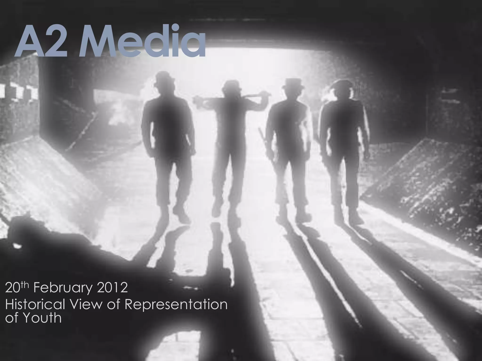 The document provides an analysis of the representation of youth in two films: A Clockwork Orange (1971) and Quadrophenia (1979). It discusses Stanley Cohen's concept of moral panic and deviance amplification in the media. For A Clockwork Orange, it describes how the film was linked to real acts of violence in the press, though youth identified with it differently. For Quadrophenia, it analyzes the representation of characters and use of style/symbols to show youth values and rebellion against society. The document concludes by discussing how these films and ideas may still influence modern moral panics.
