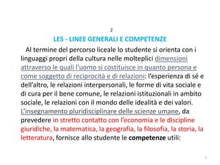 Il documento tratta del curricolo per la cittadinanza attiva nel liceo economico-sociale, sottolineando l'importanza di un insegnamento pluridisciplinare che integri scienze umane, economia e diritto. Sottolinea la necessità di formare studenti consapevoli delle dinamiche sociali e economiche contemporanee, capaci di esercitare un controllo critico sui processi socioeconomici. Viene evidenziata l'urgenza di un'istruzione che favorisca una democrazia cognitiva e l'acquisizione delle competenze necessarie per comprendere e affrontare la complessità della società moderna.
