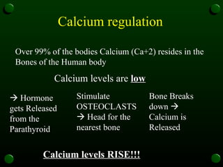 The document discusses the skeletal system, emphasizing calcium regulation in the body and the roles of various hormones. It also addresses bone-related diseases such as gout and osteoporosis, along with different types of joints and joint disorders like osteoarthritis and rheumatoid arthritis. Additionally, it highlights spine disorders, including kyphosis, lordosis, and scoliosis.
