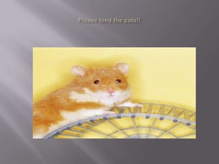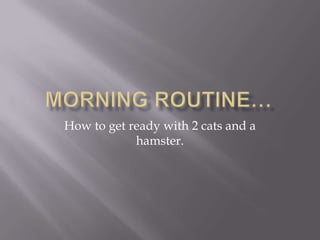 This document provides a morning to-do list for an owner with two cats and a hamster. The list includes making coffee, feeding the cats, making lunch, taking down the hamster cage for the cats to view but then putting it back up high after yelling at one cat to stop diving at the cage, and hoping the cats don't learn to climb the entertainment center while the owner is at work.