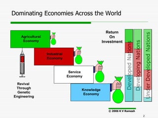 This document discusses how businesses are shifting from an industrial economy focused on tangible assets to a knowledge economy focused on intangible human capital or "business software". It argues that businesses should view their employees' skills and organizational knowledge as appreciating assets rather than depreciating assets. The document also discusses how human capital management differs from traditional human resources development in focusing on capabilities management. Finally, it presents a model of the business as composed of hardware resources and software capabilities, and calls for managing the business software to generate value independently of specific hardware.