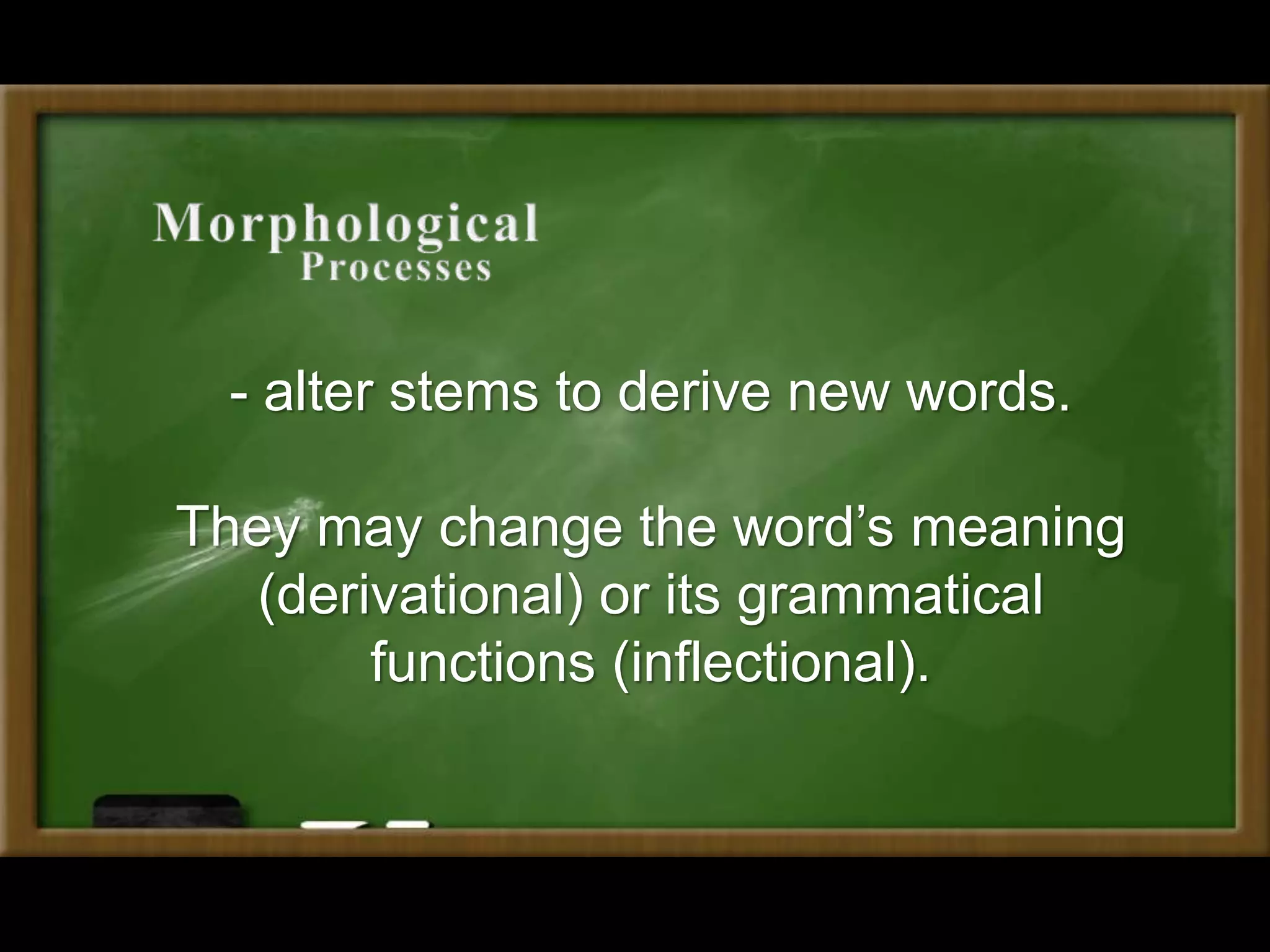 The document discusses morphological processes used to derive new words by altering stems, which can change their meaning or grammatical functions. It outlines various methods such as compounding, affixation, reduplication, internal modification, conversion, back derivation, clipping, and acronimisation, providing examples for each process. Additionally, it distinguishes between concatenative and non-concatenative processes, highlighting how different types of affixes and modifications can change word forms.