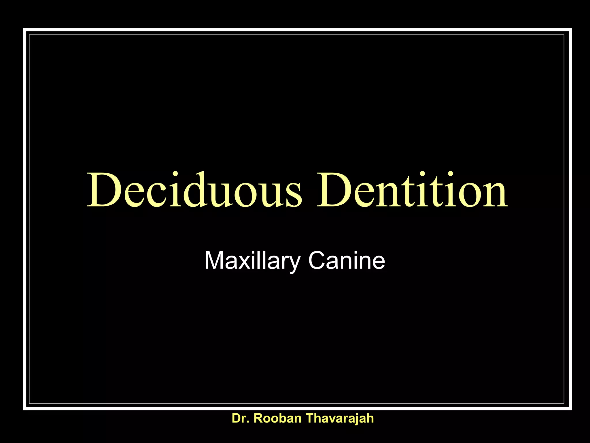 Dr. Rooban Thavarajah's lecture on maxillary canine morphology outlines the distinguishing features of deciduous dentition, emphasizing the crown's dimensions and unique cusp structure. Key points include the tooth's convex surfaces, prominent cingulum, and specific measurements related to mesial and distal slopes. The document also contrasts the morphology with incisors, noting variations in the cervical line and crown height.