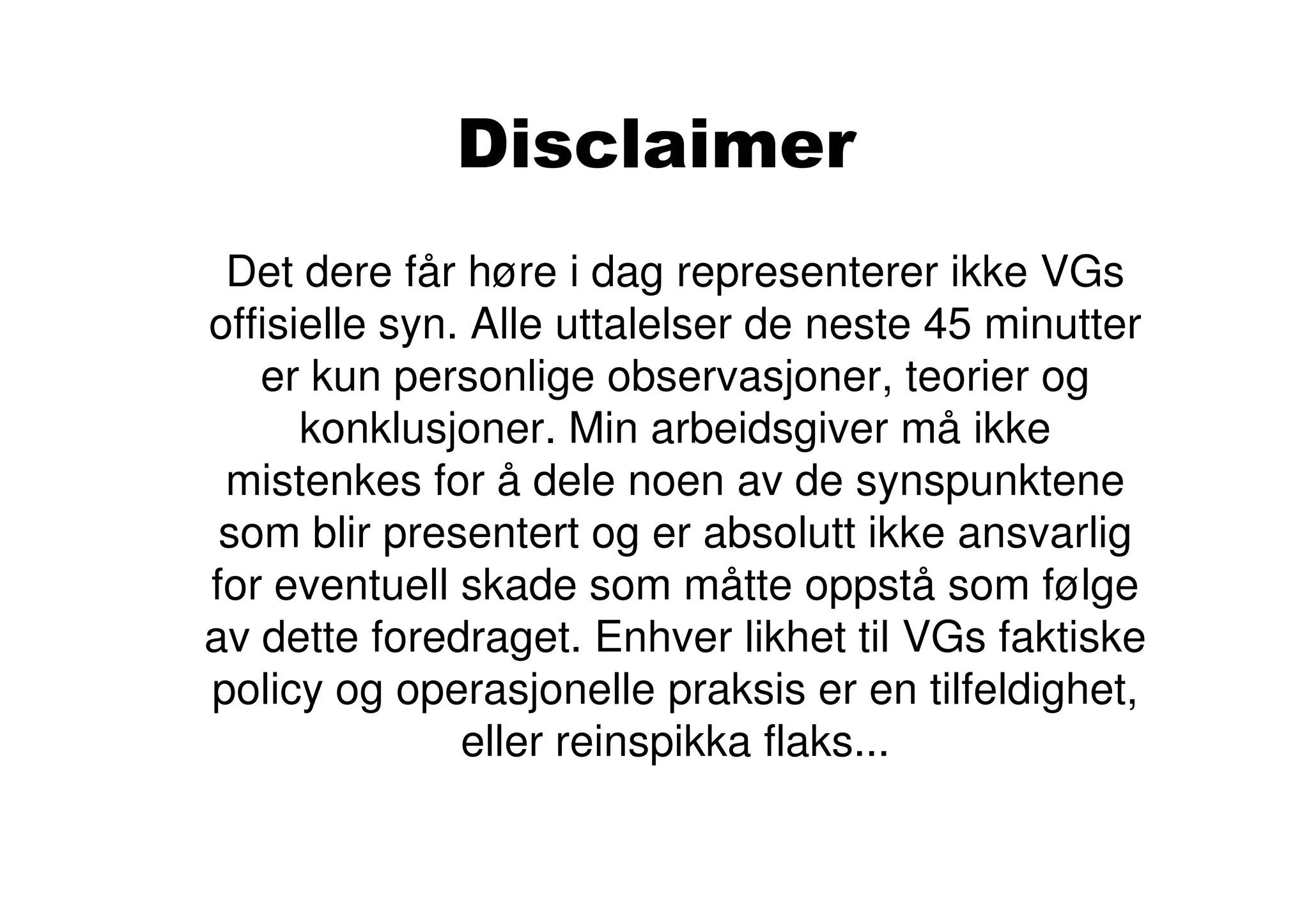 – Important message: Disclaimer: This is strictly personal. All statements made in