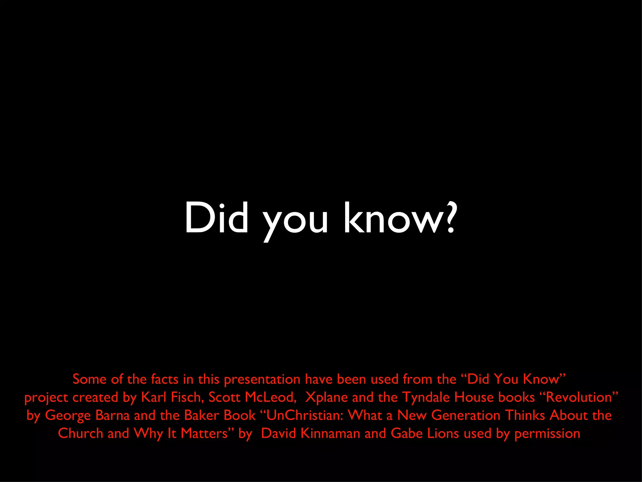 The document discusses how new technologies and social media have changed how information is shared and consumed. It notes that there are now over 1 billion internet devices and people are accessing information through various platforms like websites, apps, television, radio, magazines, and social media. While it is easier than ever to reach large audiences, connecting with them is challenging. The emergence of new media has implications for how organizations share messages, especially religious groups, and opportunities to leverage these channels to reach wider audiences.