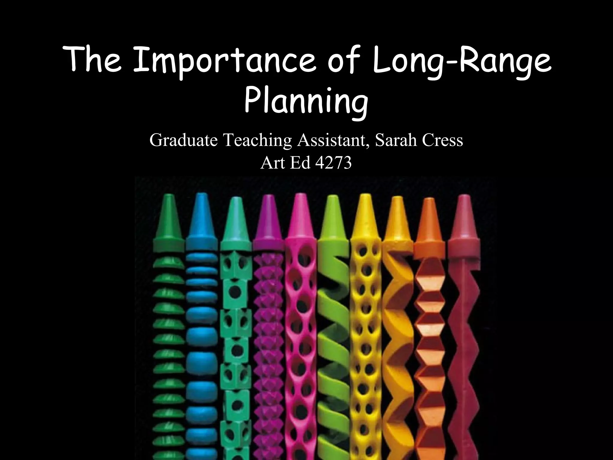 This document outlines an art education seminar that discusses the importance of long-range planning and curriculum development. It includes discussions on setting short-term and long-term goals, implementing curriculum standards, developing lessons for diverse learners, and assessing student learning. Interactive activities include brainstorming curriculum ideas, developing sample lesson plans, and considering how to address different learners.