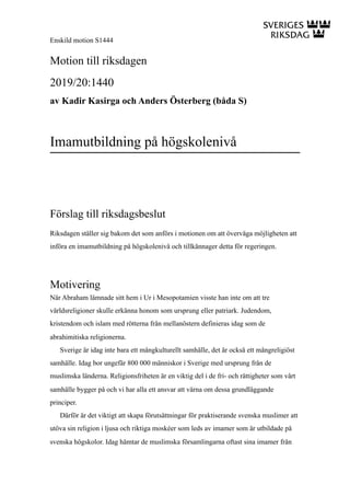 införa en imamutbildning på högskolenivå och tillkännager detta för regeringen.