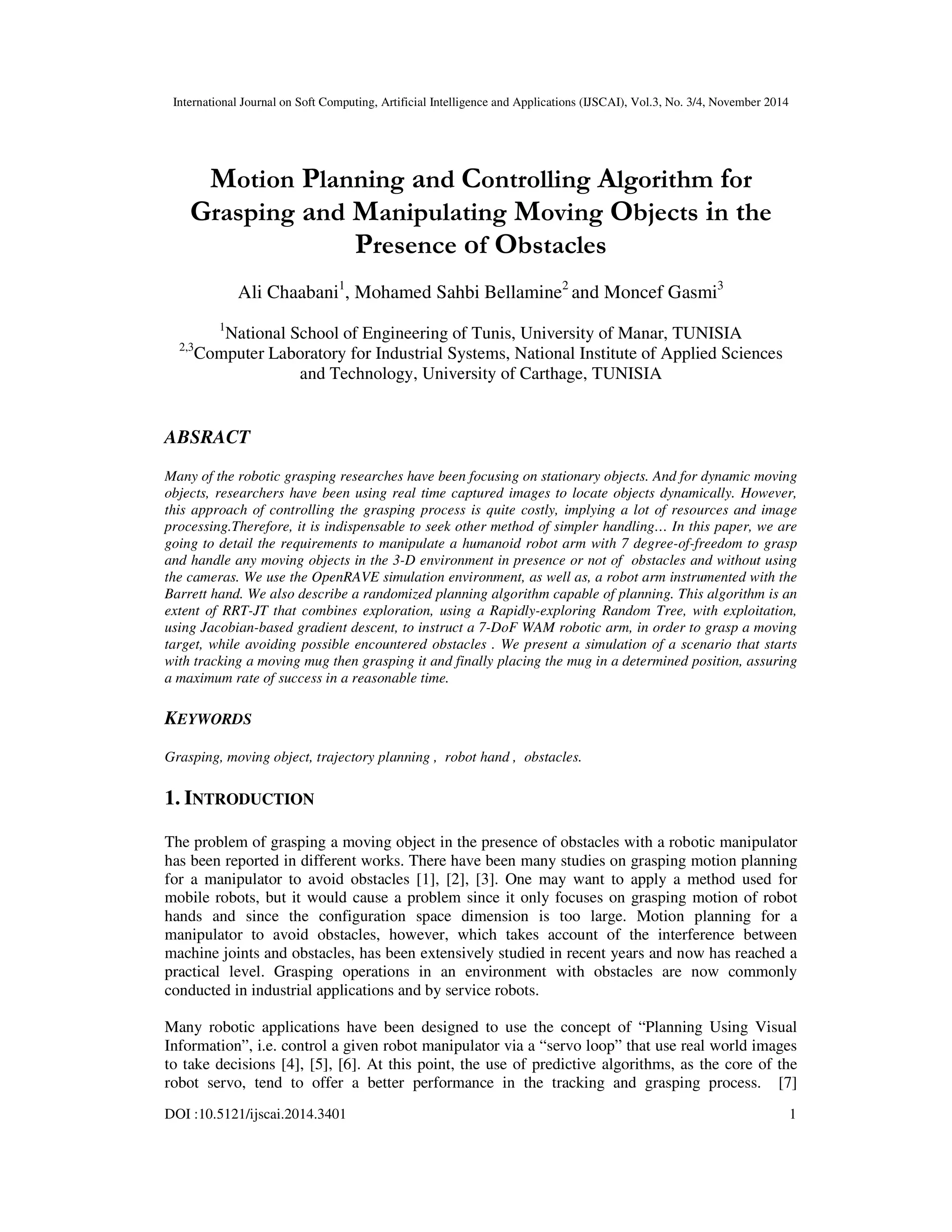 The paper presents a motion planning and control algorithm for humanoid robots to grasp and manipulate moving objects without using cameras, focusing on a 7-degree-of-freedom robotic arm. It introduces a randomized planning algorithm that employs a combination of a rapidly-exploring random tree and a Jacobian-based gradient descent for effective manipulations in a 3D environment filled with obstacles. Simulation results demonstrate the algorithm's capability to successfully grasp a moving object while achieving a high success rate in a reasonable timeframe.