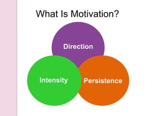 The document discusses several theories of motivation: