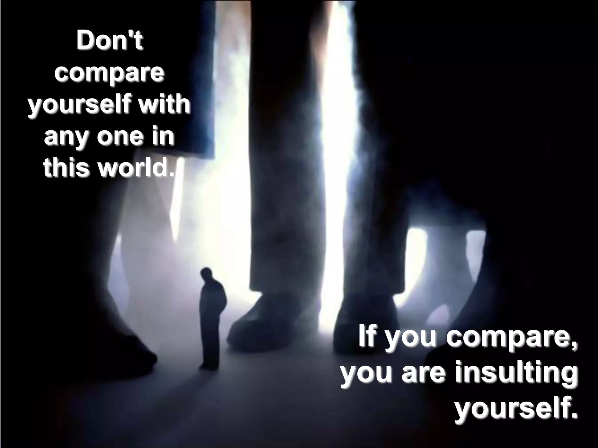 This document provides advice and words of encouragement. It states that one shouldn't compare themselves to others as it is insulting. It also says that God provides solutions to problems, and that every painful story can have a successful ending if one accepts the pain and prepares for success. It encourages facing challenges rather than complaining and changing oneself for peace.