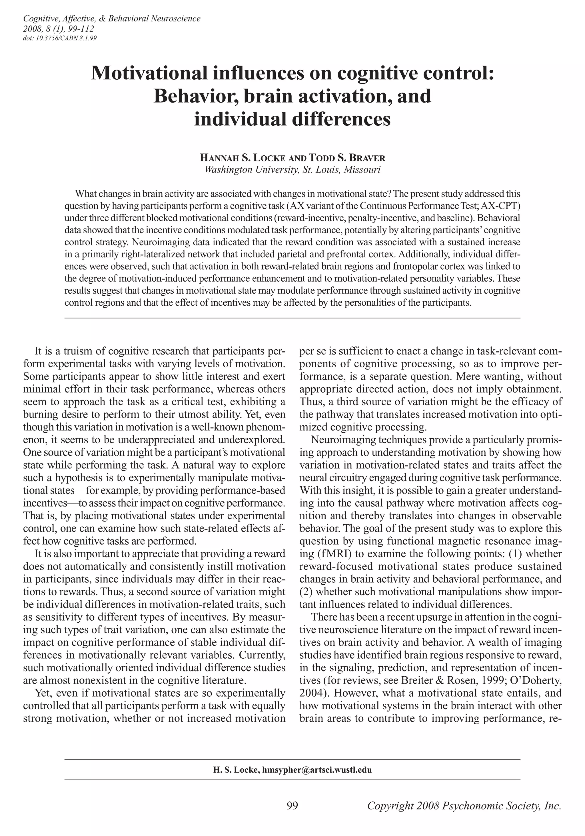 The document discusses sources of variation in motivation and cognitive performance. It explores three potential sources: 1) an individual's motivational state during a task, which can be experimentally manipulated using incentives; 2) individual trait differences in motivation, such as sensitivity to rewards; 3) the pathway between increased motivation and optimized cognitive processing, as motivation alone may not be sufficient to improve performance. The study aimed to examine these questions using fMRI to assess how reward-focused motivational states and individual differences affect brain activity and behavioral performance during a cognitive task.