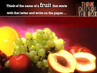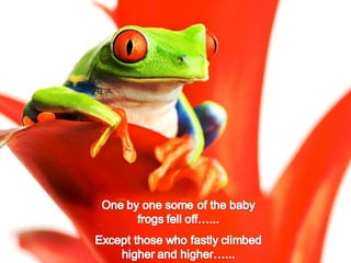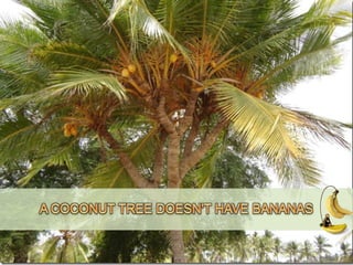 The document describes a scenario where 4 animals - a lion, chimpanzee, giraffe and squirrel - compete to see who can get a banana from a very tall coconut tree the fastest. It asks the reader to choose which animal they think will win within 10 seconds and says their answer will reflect their personality. It then provides brief descriptions of what each animal choice may say about the reader's personality.