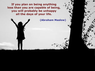 The document discusses Abraham Maslow's hierarchy of needs and how it relates to motivation. Maslow proposed that humans are motivated to fulfill a hierarchy of five needs: physiological needs, safety needs, love and belonging needs, esteem needs, and self-actualization needs. The hierarchy posits that lower level needs must be satisfied before higher level needs can motivate behavior. Studies also show that physical rewards like money primarily motivate simple tasks, while complex work is better motivated by fulfillment of higher-level needs like purpose and mastery. Maslow's hierarchy highlights the complexity of human motivation, though the specific ordering of needs has not been validated by research.