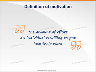 The document discusses topics around motivation including: Maslow's hierarchy of needs which organizes physiological, safety, social, esteem, and self-actualization needs; four maturity levels of engagement and motivation based on competence and experience; tools for controlling work satisfaction including motivation and hygiene factors; and practical hints for motivating teams such as creating a friendly atmosphere and acknowledging achievements. The summary emphasizes that lack of motivation can spread so prevention is important.