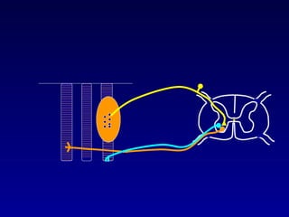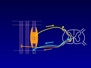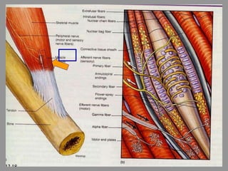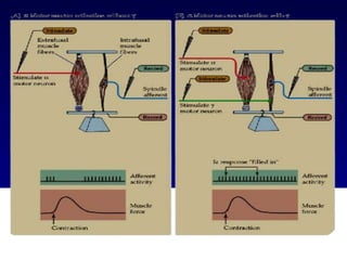 The document discusses the stretch reflex and muscle tone. It defines the stretch reflex as a monosynaptic reflex where stimulation of muscle spindles by stretching a muscle leads to contraction of the same muscle via alpha motor neurons. It describes the roles of gamma motor neurons in maintaining sensitivity of muscle spindles. Disorders of muscle tone like spasticity, rigidity, and hypotonia are explained in relation to lesions in the pyramidal and extrapyramidal systems. Clinical examination techniques for assessing muscle tone are also outlined.