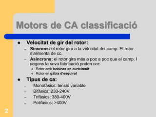 – Síncrons: el rotor gira a la velocitat del camp. El rotor