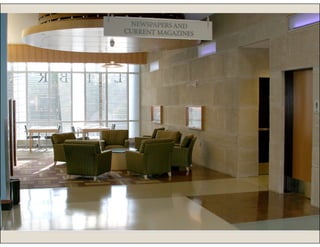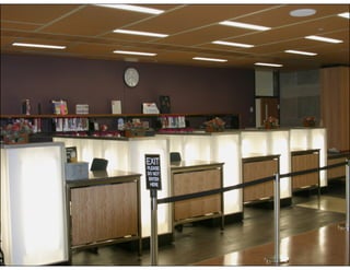 The document details the renovation project of the Mount Prospect Public Library in Illinois, which had a budget of $21.45 million. Key improvements included modernizing the space, enhancing technology, and incorporating bright, inviting design elements. The project aimed to maximize the existing building's footprint while meeting the community's needs and preserving its historical significance.