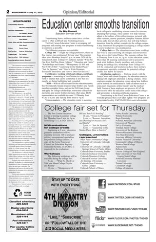 The Fort Carson Education Center is revamping programs to help Soldiers transition to civilian life. New programs include College 101 courses taught by professors, expanded certificate programs, and partnerships with colleges to establish veteran centers. The education center is also working with employers interested in hiring veterans and will host a college fair on Thursday with over 35 institutions to help with the transition process.