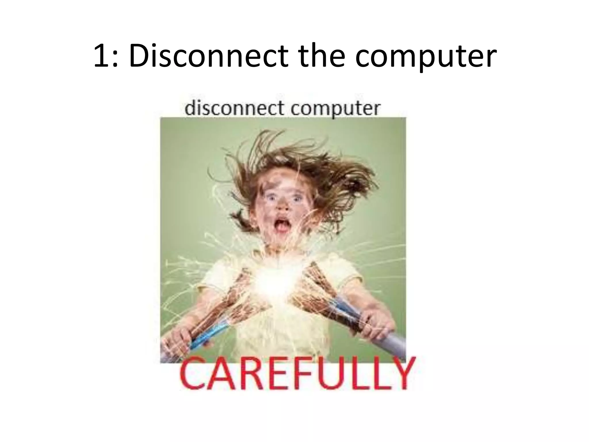The document provides a checklist for safely working on computer hardware. Key tips include disconnecting power, grounding oneself, organizing the workspace, and documenting any changes. It emphasizes the importance of handling delicate components and ensuring ease of reassembly.