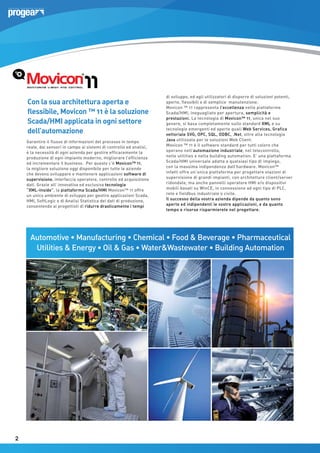 Movicon TM 11 è una piattaforma SCADA/HMI versatile e innovativa, progettata per migliorare l'efficienza e la flessibilità nelle applicazioni di automazione industriale. Grazie alla sua architettura aperta e al supporto per le tecnologie standard come XML, web services e OPC, consente integrazioni fluide con vari sistemi, riducendo i costi di sviluppo e manutenzione. Questa soluzione è ideale per un'ampia gamma di settori, inclusi automotive, chimico, energia e building automation.