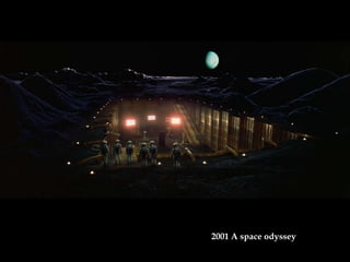 The document lists several science fiction films set in future time periods ranging from the early 21st century to the 23rd century, including 2001: A Space Odyssey, Metropolis set in 2020, AI set in the 22nd century, Cargo set in the 23rd century and filmed in German, Blade Runner set in 2019, Timecop from 1994, and Escape from New York from 1997. It also mentions the disaster film 2012.