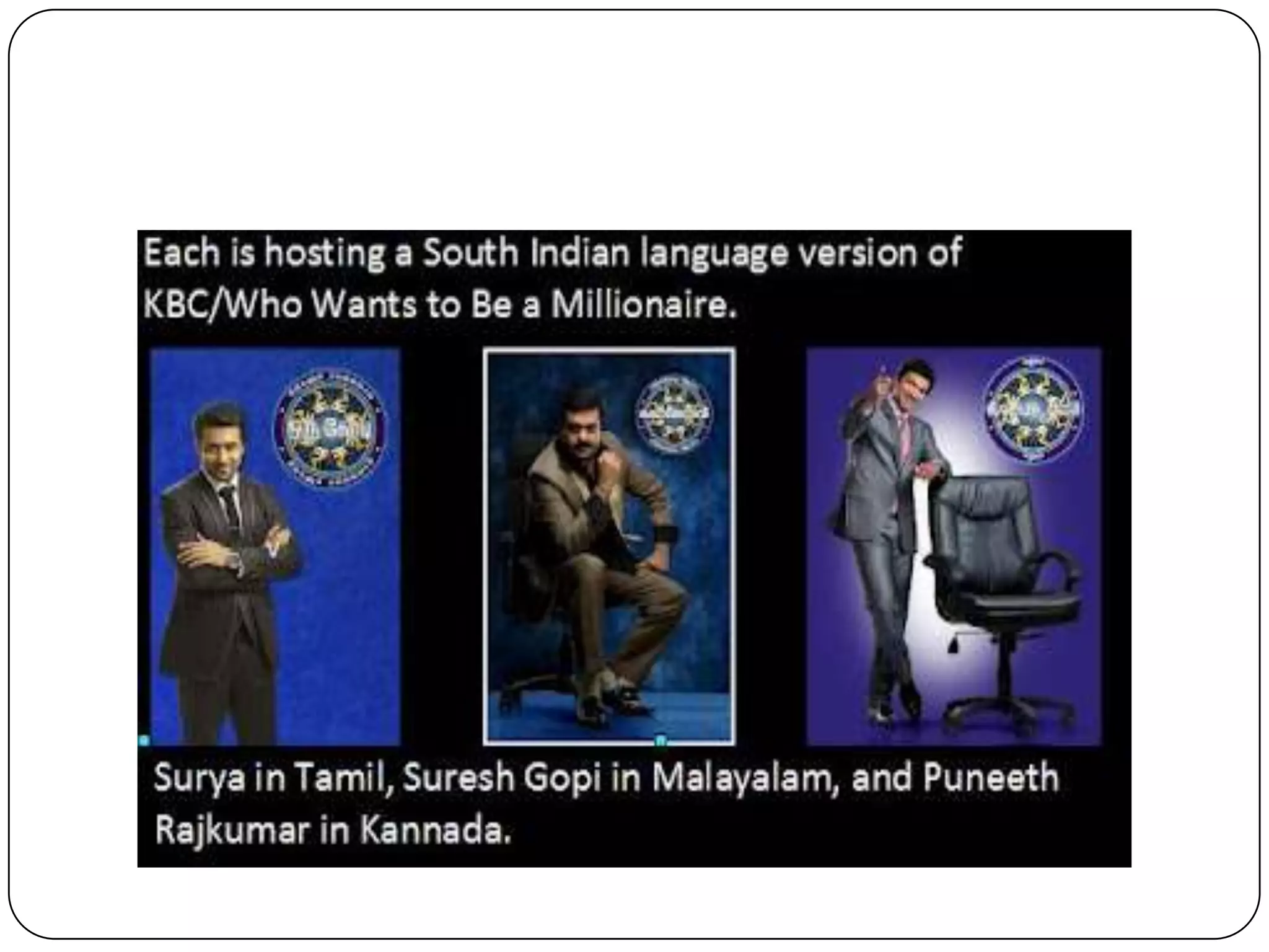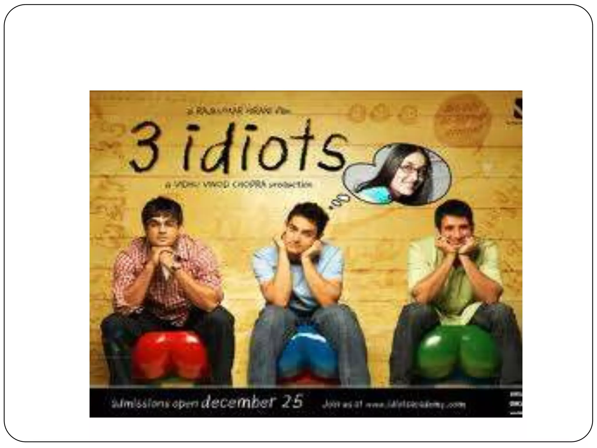 The document provides clues to identify movies, characters, and other entities related to the film industry. Some of the movies identified are San Ge Sha Gua, Chariots of Fire, Memento, Pather Panchali, and Titanic. Characters identified include Don Vito Corleone and Chatur Ramalingam. Other entities identified are James Bond film franchise, BBC India's "Film of the Millennium" award winner, and two Robin Williams comedies that were remade as Bollywood films. The document tests knowledge of cinema through identification questions.