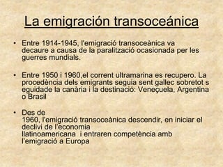 •Entre 1914-1945, l'emigració transoceànica va