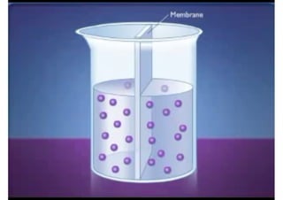 The document discusses different types of transport across cell membranes. It explains that cell membranes are semipermeable and allow certain materials to pass through. Small molecules can pass through passively via diffusion, osmosis, or facilitated diffusion without using energy. Larger molecules and substances moving against a concentration gradient require active transport which uses the cell's energy. Other processes like endocytosis and exocytosis allow larger particles and molecules to enter or exit cells.