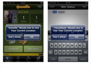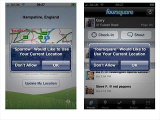 The document presents insights from a presentation on the evolution of location-based services (LBS) and their growth potential in various sectors like online advertising and mobile applications. It discusses the challenges of standardizing location data and highlights the importance of user control over location sources. The conclusion emphasizes the need for the internet to better reflect real-world language and experiences.