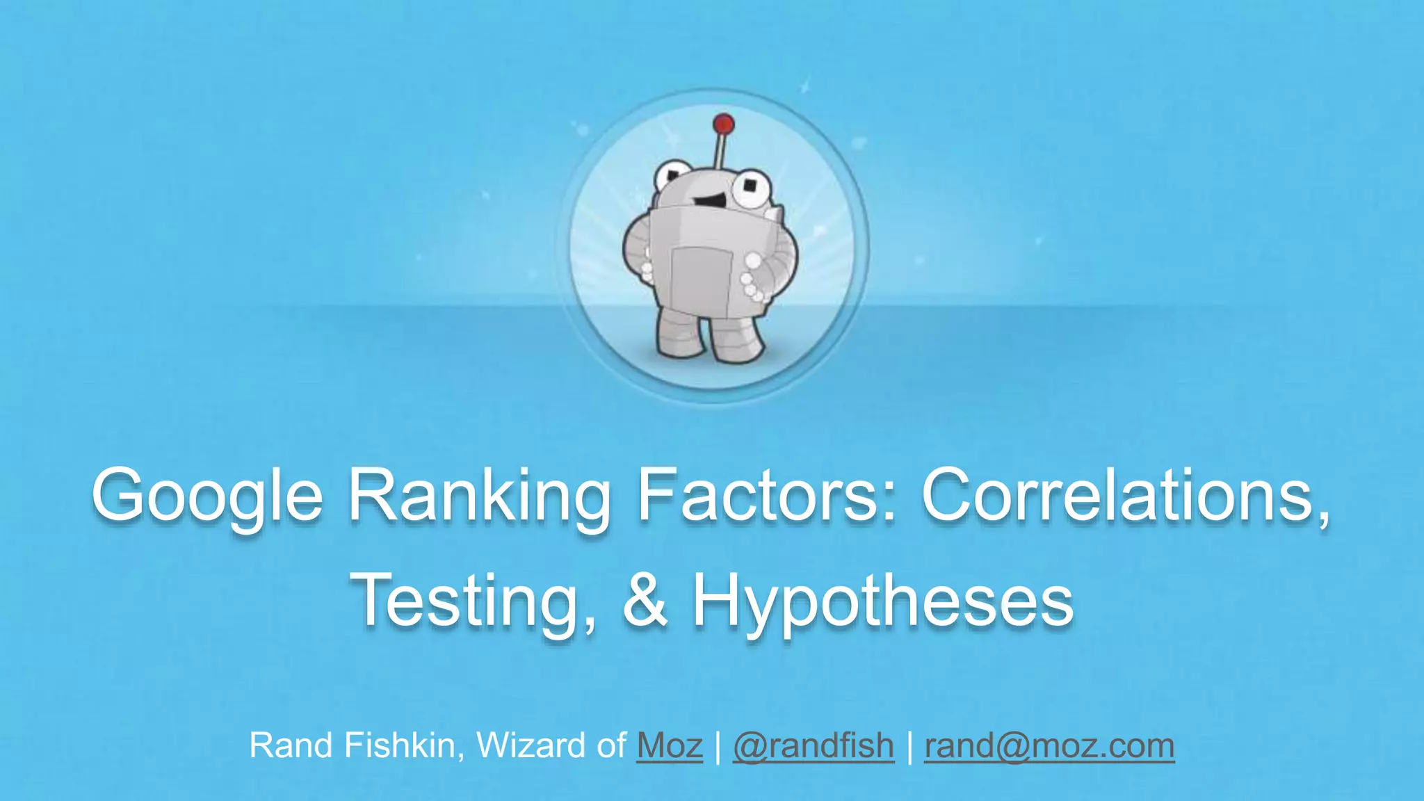 This document summarizes Rand Fishkin's presentation on Google ranking factors. It discusses correlations found in Moz's 2013 search ranking factors data and what they indicate about factors like links, social signals, and content. It also describes a SEO test Rand conducted where exact anchor text match links outperformed non-exact match links, showing anchor text still matters. Finally, it presents three hypotheses Rand has about what Google is doing: that carousels are connected to entities and brands; Google ranking favors frequently mentioned brands from diverse sources; and Google uses search and visit patterns to connect words and rank results.