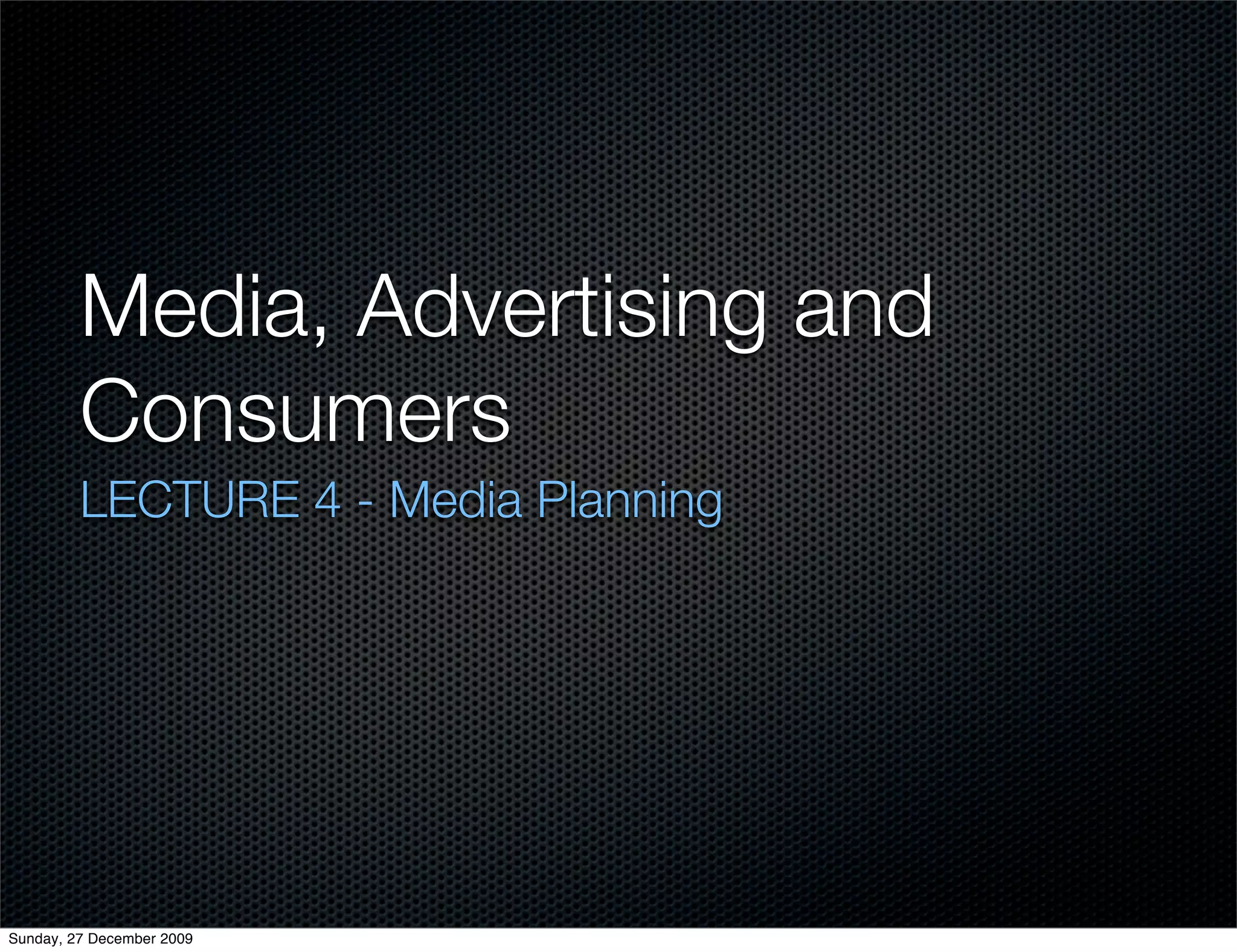 This document discusses various topics related to media planning and audience reactions to media. It provides information on how audiences choose and process information from different media sources. It also discusses measures used to evaluate advertising effectiveness, including exposure, circulation, advertising exposure, perception and communication. Response functions are introduced as a way to measure the percentage of people exposed to an ad multiple times that are expected to respond. The cost efficiency of advertising, measured by cost per thousand (CPM), is also covered.