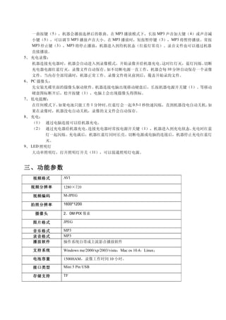 1、Power on/off 2、(VIDEO、AUDIO、PHOTO)OK/SAVE,MODE 3、MP3PLAY/PAUSE/STOP 4、MP3