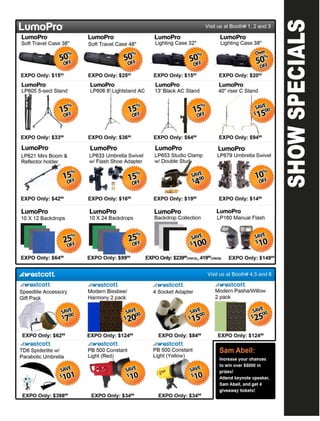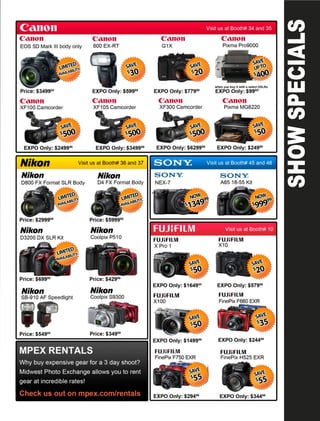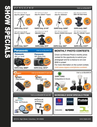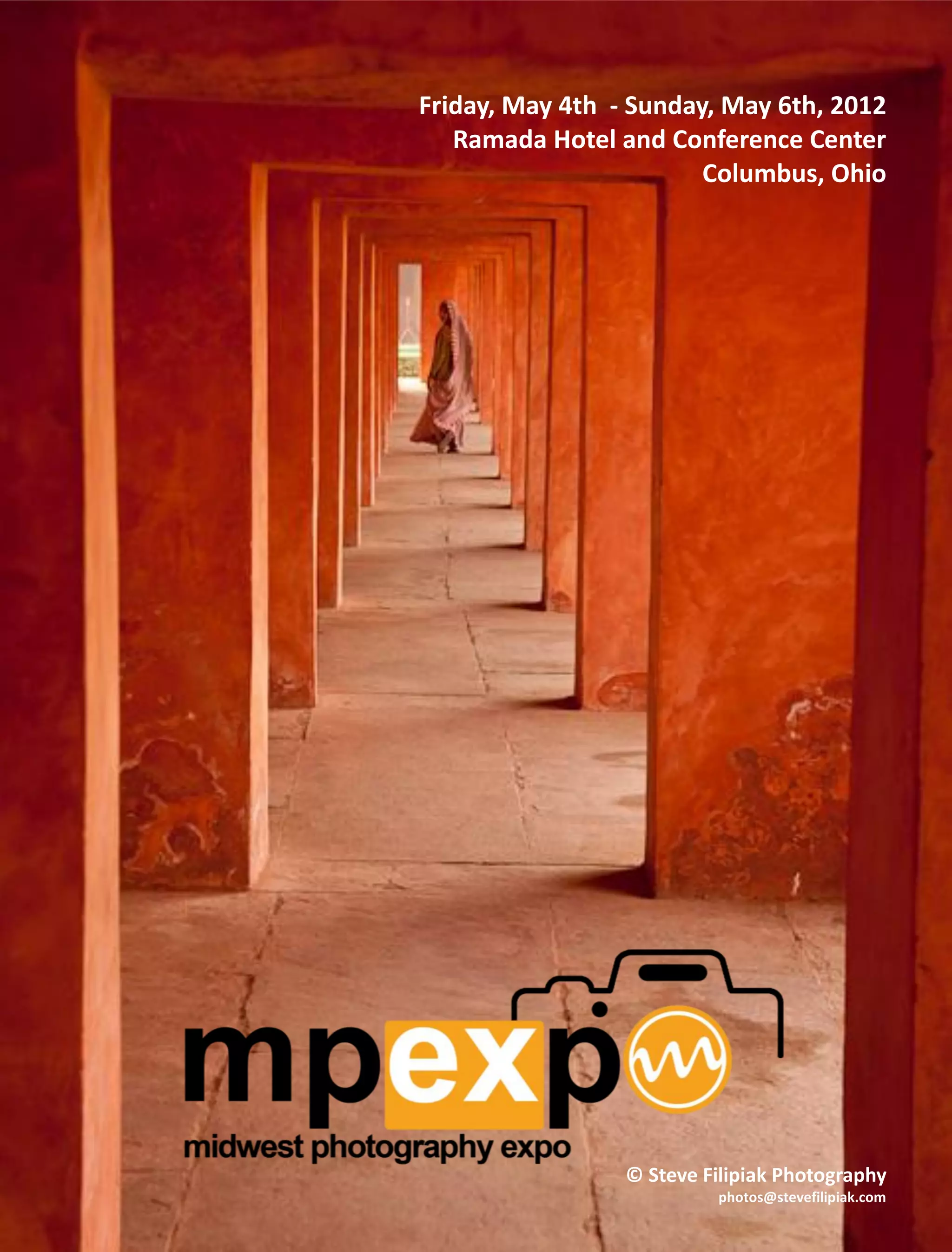 The document advertises the 2nd Annual Midwest Photography Expo taking place from May 4-6, 2012 at the Ramada Hotel and Conference Center in Columbus, Ohio. The expo will feature a trade show with over 30 booths, workshops on a wide range of photography topics, and keynote speakers. Attendees can enter raffles and contests to win prizes valued at over $5000. The schedule provides details on the trade show hours, featured workshops each day, and brief biographies of some of the keynote speakers.
